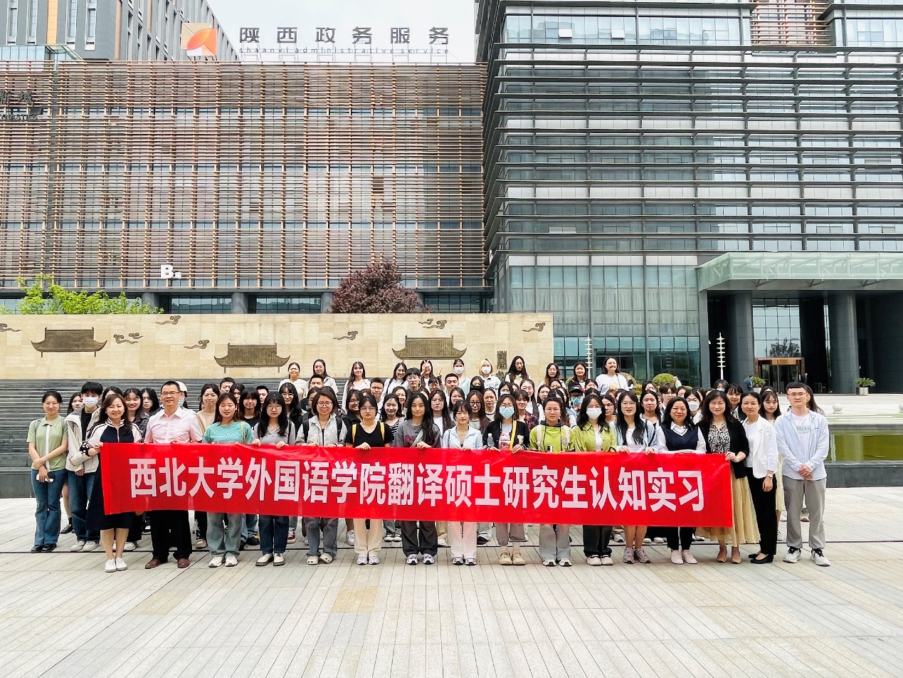 (A Group Photo of the 2023 Cohort of Master's in Translation Students from the School of Foreign Languages, Northwest University, at the Cognitive Internship)