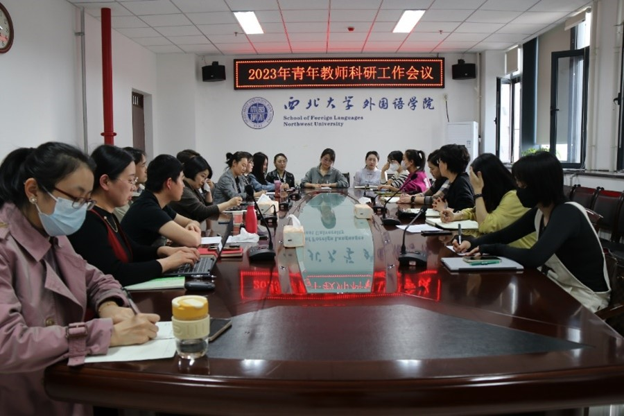 To enhance the development of young faculty and consolidate their strength, the School of Foreign Languages convened a research meeting for young faculty on the afternoon of March 8, 2023, in the school’s conference room. Cao Ruonan, the Dean of the School of Foreign Languages, Vice Dean Su Rui, and young faculty members under the age of 40 from the school attended the meeting.
