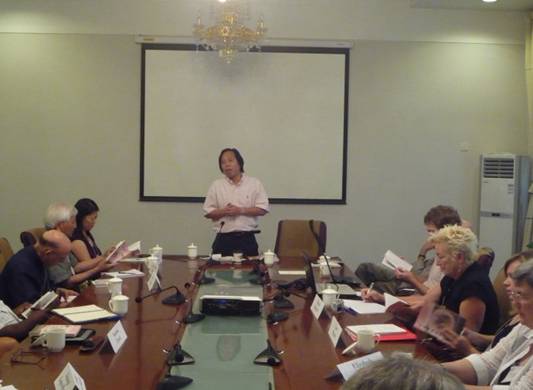 7月9日上午,太阳成官网副院长胡宗锋教授应邀在北校区国际交流学院一层会议室,为美国富布莱特——海斯中国文化与历史考察团(Fullbright-Hays seminars abroad China: History and Culture in China)作了题为“中国传统文化”的英文讲座。该团的成员是由美中友好关系委员会(National Committee On United States-China Relations )选派的对中国文化和历史感兴趣的专家和学者组成,将围绕“examines the country's fascinating past, complex present, and future challenges.”在中国进行为期近一个月的考察。