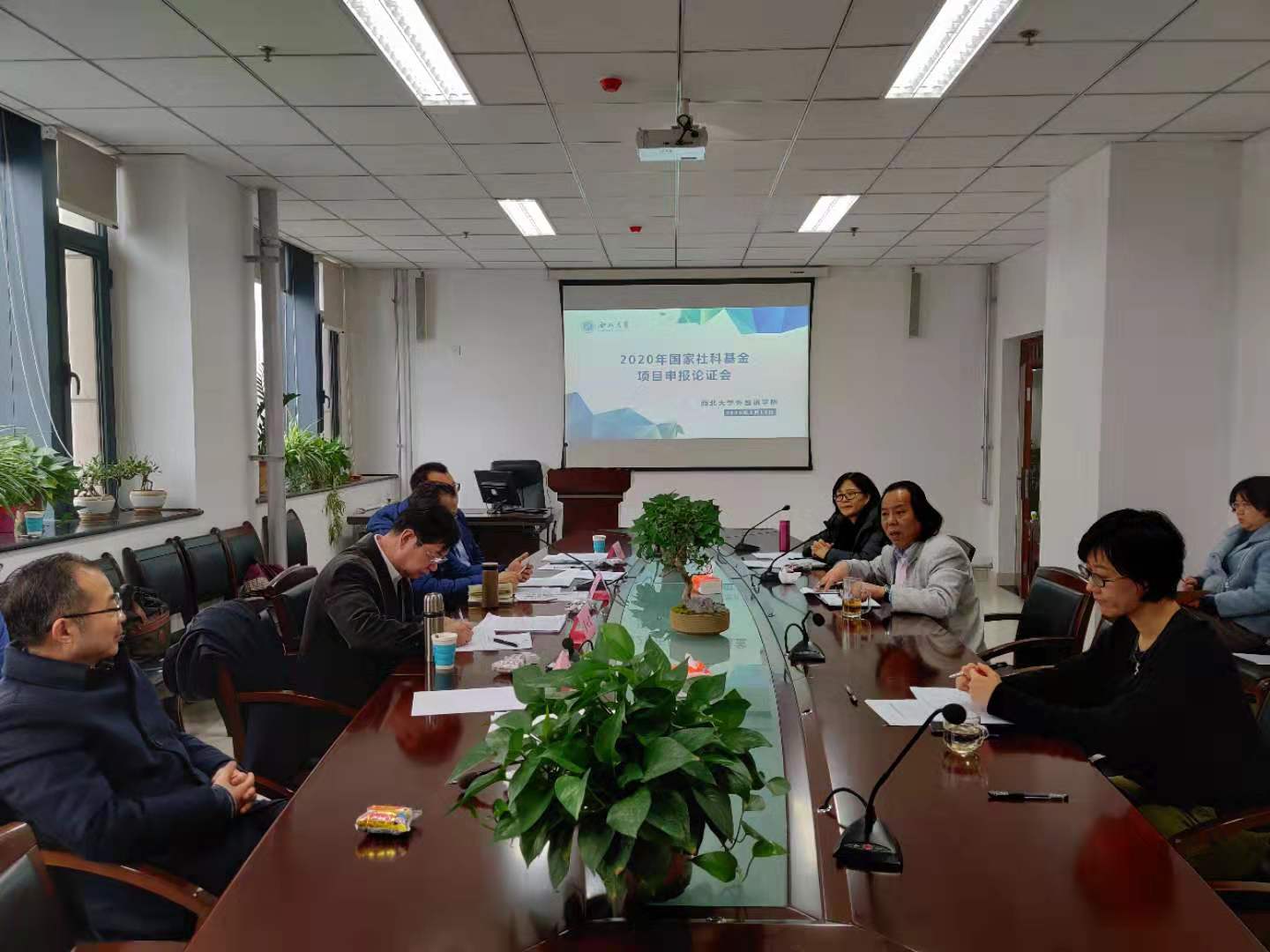 1月10日上午,我院在510会议室召开2020年国家社科基金项目申报论证会。长安大学徐玉臣教授、西安交通大学霍士富教授、太阳成集团tyc9728王新刚教授以及韩志斌教授莅临指导,社科处处长马朝琦、科长邵平应邀出席,科研副院长任海棠、教学副院长曹若男等数十位教师参会,会议由院长胡宗锋主持。