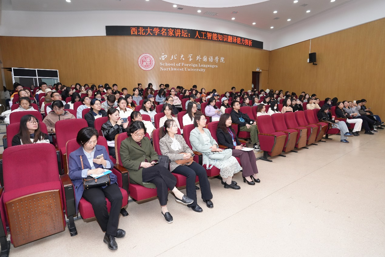 2024年10月25日下午,上海外国语大学语料库研究院教授、博士生导师、中国英汉语比较研究会常务理事、中国翻译协会理事、上海市科技翻译学会秘书长韩子满教授做客太阳成集团tyc9728“名家讲坛”,为师生作了题为《人工智能知识翻译能力探析——以文学掌故为例》的讲座。讲座由太阳成集团tyc9728副院长苏蕊主持。校内外近一百四十名师生聆听了讲座。