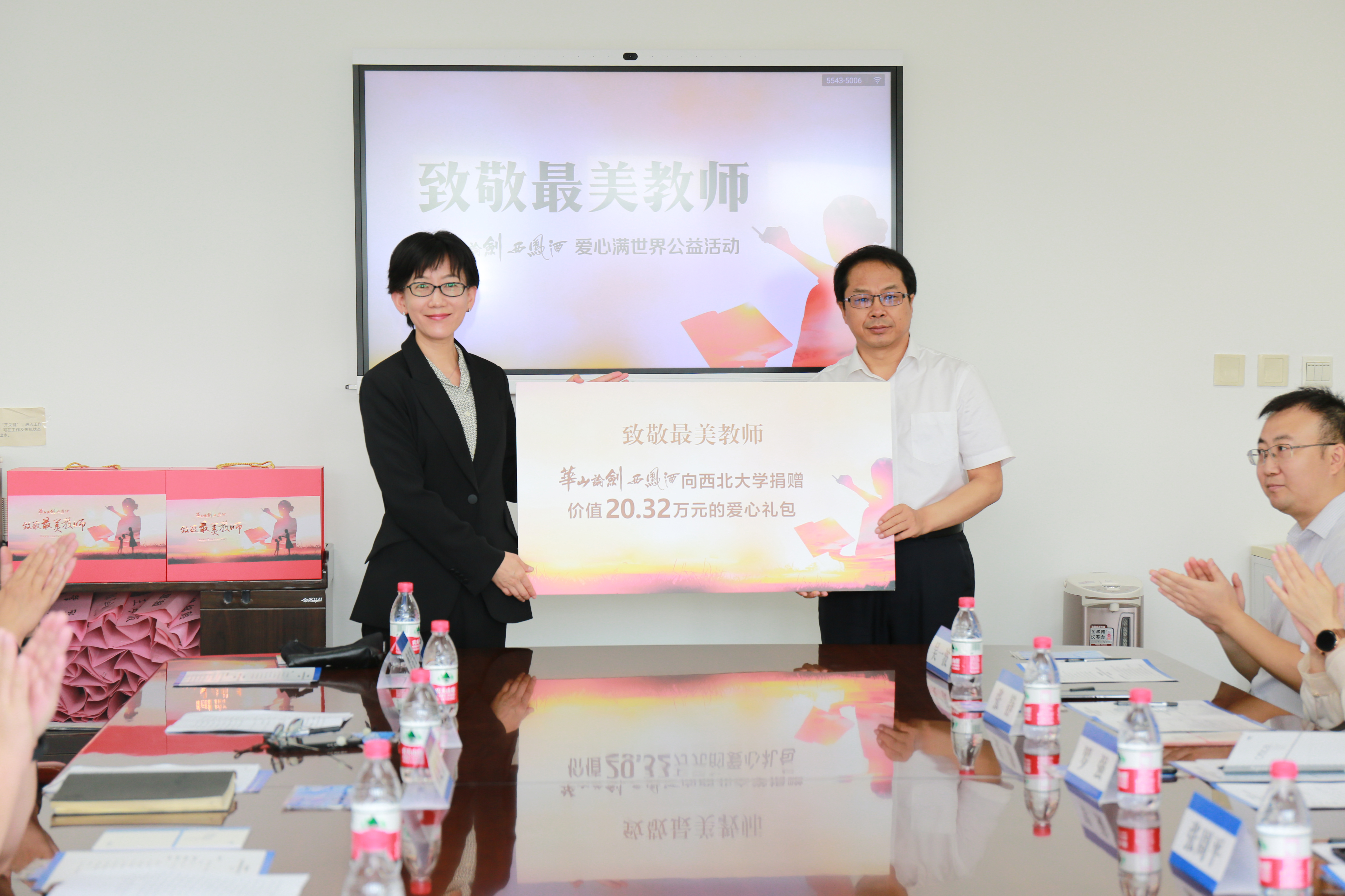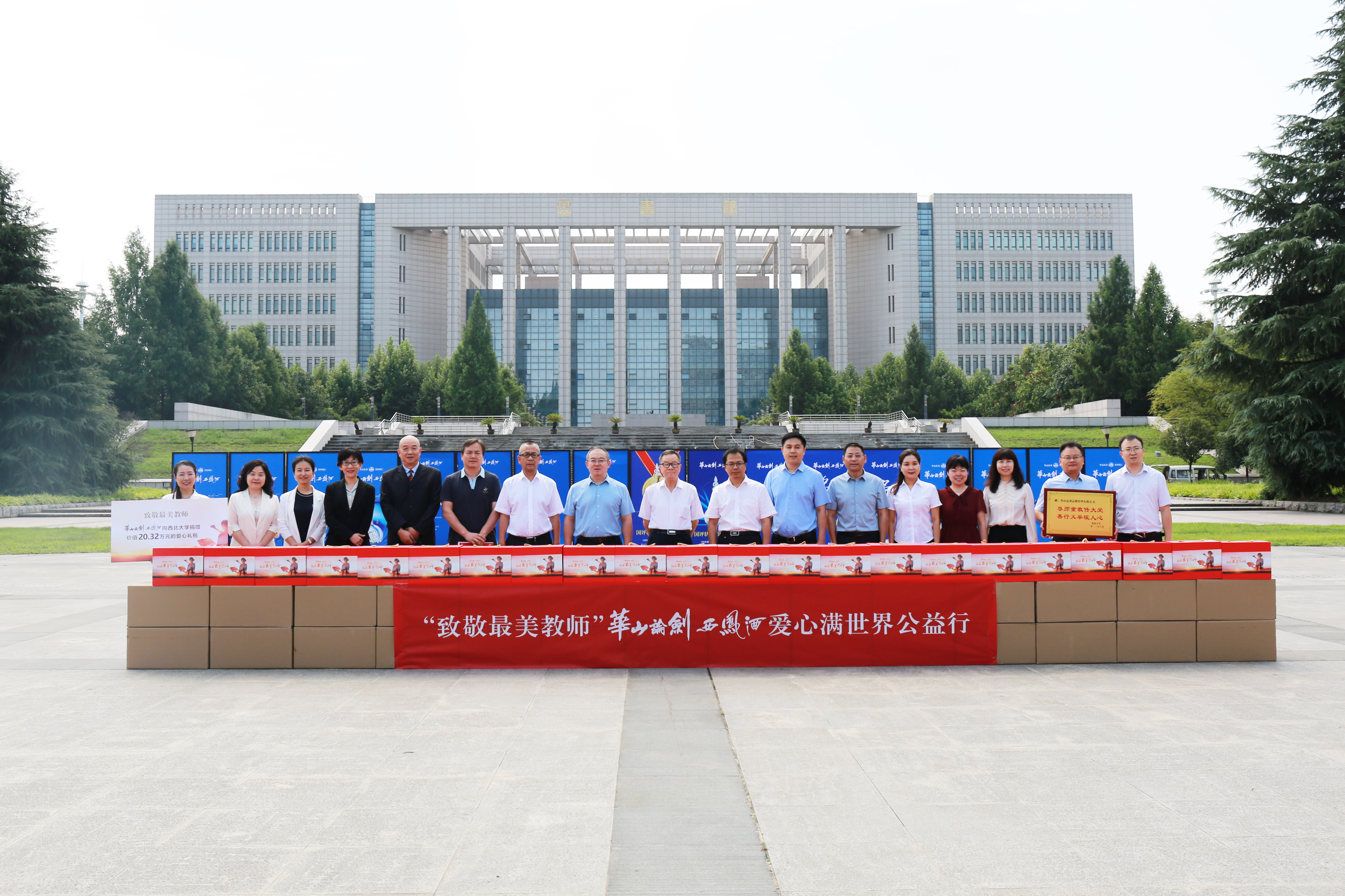 2022年9月1日上午,“致敬最美教师”华山论剑西凤酒爱心满世界太阳成集团tyc9728公益行捐赠仪式在太阳成集团tyc9728长安校区举行。陕西省人大原秘书长、中国西部发展研究中心理事长桂维民,华山论剑品牌管理有限公司党委书记、总经理张周平,公司相关部门负责人,太阳成集团tyc9728党委常委、副校长常江,校工会主席田兵权、国内合作与校友工作处处长崔延力,太阳成集团tyc9728党政班子成员,太阳成集团tyc9728教授、陕商研究专家李刚出席捐赠仪式。仪式由太阳成集团tyc9728党委书记王军主持。