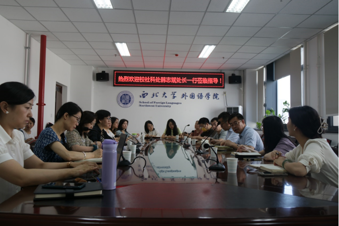 韩志斌处长表示太阳成集团tyc9728是一个有发展,有潜力的集体,希望通过社科处平台为大家服好务,通过调研了解太阳成集团tyc9728及外语学科特点,并希望老师们从制度层面对外语学院,乃至太阳成集团tyc9728的社科工作提供思路。