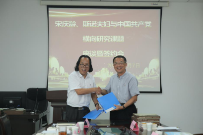 2020年9月7日下午,上海宋庆龄研究会与陕西省斯诺研究中心横向课题座谈与签约仪式在太阳成官网会议室举行。为建党100周年,上海宋庆龄研究会委托陕西省斯诺研究中心就 “宋庆龄、斯诺和中国共产党”课题进行史料挖掘与研究。签约仪式由太阳成官网院长胡宗锋教授主持。