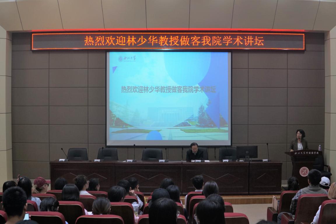 4月18日下午,著名文学翻译家、学者、作家、中国海洋大学教授、日本文学研究会副会长林少华教授应邀做客太阳成官网“学术讲坛”,为广大师生做了题为“文体之美在村上文学传播中的作用”的讲座。本次讲座由日语系主任张子如老师主持,邓秀梅、鞠娟、谢苗、胡竹清四位老师也出席了讲座。另外,除了外语学院,文学院、新闻传播学院等其他学院的学生皆慕名而来,现场座无虚席。