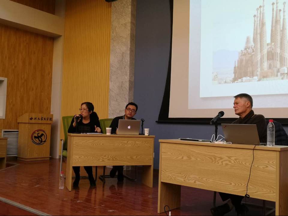 在勒克莱齐奥先生最后一天的课程上,勒先生以“巴洛克艺术”为主题,系统讲述了巴洛克艺术在欧洲的兴起、发展,以及在当代世界各民族艺术中留下的痕迹。勒先生触类旁通、学识丰厚,其巨大的知识量却也为翻译工作带来难度。然而,杨老师却以其敏捷的反应和深厚的学养,十分精准而典雅地翻译出了勒先生的每一句陈述,将先生文学大师的风范彰显了出来。