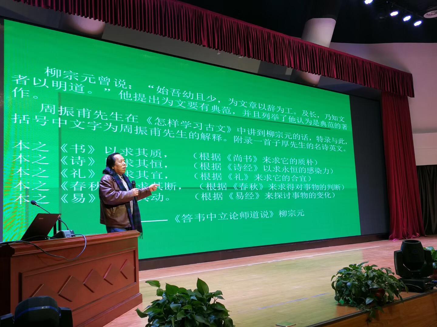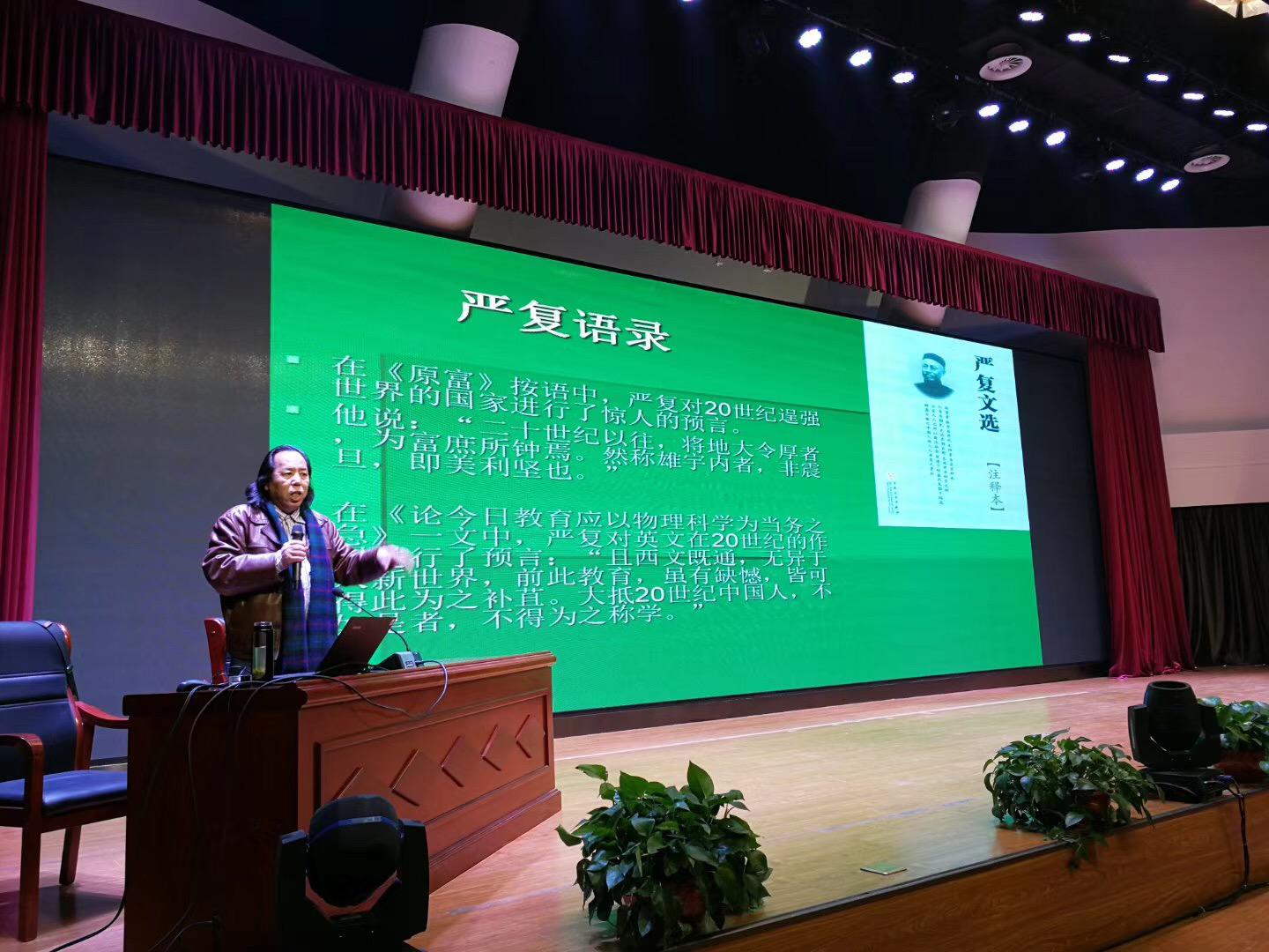 2018年12月19日,应太阳成官网附中的邀请,太阳成官网胡宗锋教授为附中浐灞校区的学生做题为“学无中西”的大学教授选修课讲座。