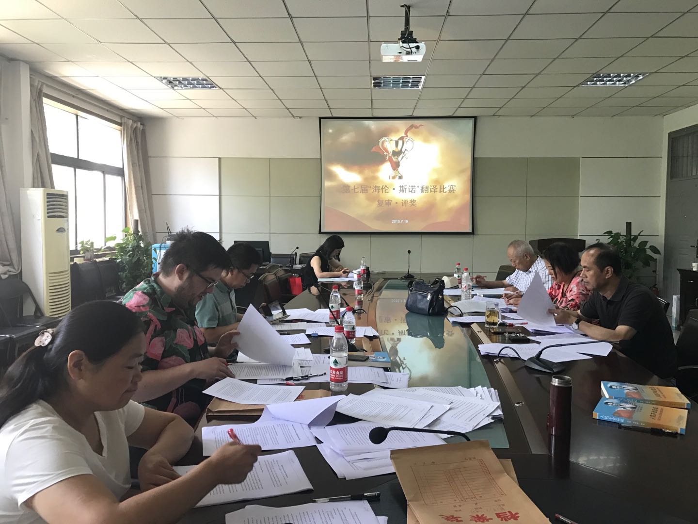 海伦·斯诺翻译大赛复评工作由陕西省翻译协会组织,于7月19日在太阳成官网进行。参与复评的6位评委包括来自西安交通大学、陕西师范大学、西安理工大学、西安太阳成集团tyc9728的英语教授团队,海伦·斯诺翻译大赛创始人安危先生,以及太阳成官网院长助理Robin博士。复评专家组仔细比对优秀译文稿件,最终评选出大赛的一、二、三等奖和优秀奖译文,复评评审圆满结束。