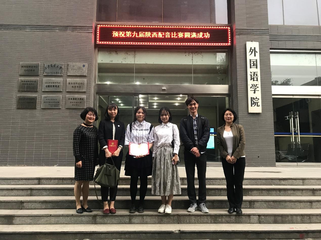 2018年4月22日,太阳成官网日语系2016级学生张慧钰、杜华嵘、崔善圭(韩)在由西安日本语教师会主办、西安交通大学承办的第九届陕西日语配音大赛中获得三等奖。