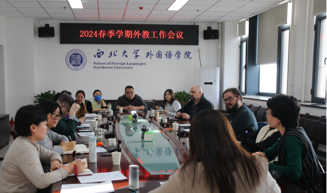 2024年3月13日下午4:30,学院召开2023至2024学年第二学期外教工作会议。学院领导、各系部主任和英语、日语、俄语、阿拉伯语外教参加了本次会议。