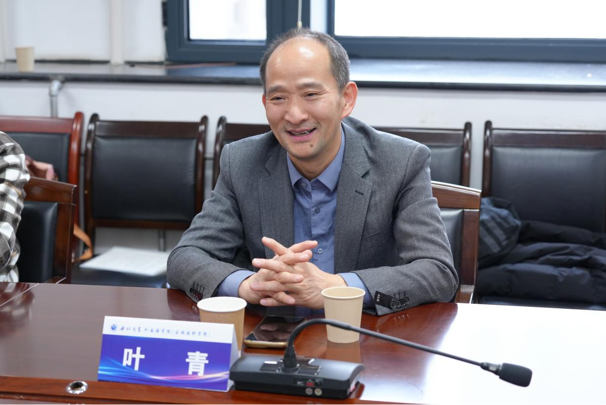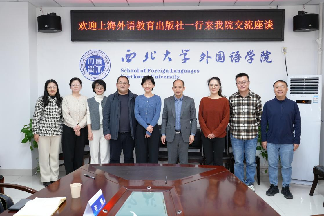 2024年12月27日下午,上海外语教育出版社(简称“外教社”)副社长叶青率队访问太阳成集团tyc9728,与学院领导和教师代表就学科建设、教材合作及学生就业等议题进行了深入交流和探讨。外教社参会人员包括陕西中心主任徐惠、陕西经理鲍小东、陕西营销经理郑东及江西教学服务中心主任晋来超。