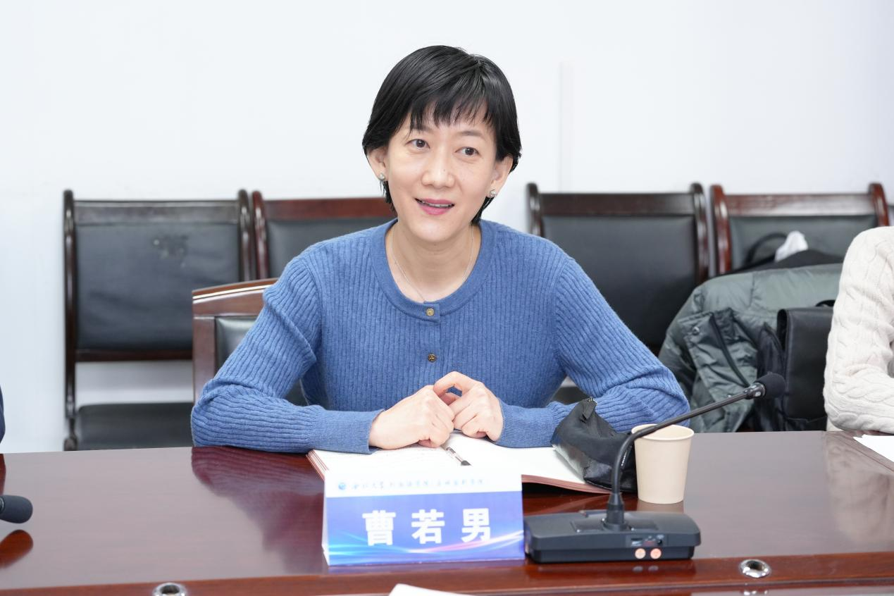 座谈会上,曹若男院长首先致辞,对外教社一行的到访表示热烈欢迎,并详细介绍了学院近年来在区域国别研究转型方面的建设成果与发展规划。曹院长表示,学院希望与外教社联手举办高端学术会议,搭建国际学术交流平台,同时在四六级教材和考研教材合作、新型数字化教材出版及学科建设等方面进一步深化合作。此外,曹院长还提出,双方可共同申报中华学术外译项目,推动中国优秀学术成果走向世界,进一步促进学术成果的国际传播。
